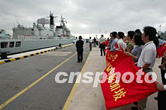 中新社北京五月二十三日電新加坡消息:今日上午十點,美麗的“花園島國”新加坡,披上節(jié)日盛裝,迎來了中國人民海軍第一支艦艇編隊——環(huán)球航行訪問艦艇編隊。 新加坡海軍在樟宜港為中國艦艇編隊的到來舉行了隆重?zé)崃业臍g迎儀式,新加坡海軍艦隊副司令陳凱賀(TAN KAI HOE)上校和中國駐新大使張九桓、中資機(jī)構(gòu)、留學(xué)生及新各界人士到碼頭迎接。歡迎人群中拉起了“熱烈歡迎中國海軍艦艇編隊訪問新加坡”的巨幅標(biāo)語,上百面中國國旗在歡迎人群中揮舞成一片;中國使館女青年向總指揮丁一平獻(xiàn)花,陳凱賀上校致歡迎詞,丁一平將軍作了簡短講話并與張九恒大使、陳凱賀上校共同接受了記者的采訪。 丁一平將軍在接受記者采訪時說,這是中國海軍艦艇編隊首次訪問新加坡,作為中國人民和中國軍隊的友好使者,我們五百零六名官兵都感到非常高興。這次訪問,對加深兩國人民和軍隊之間的相互了解、增加信任、擴(kuò)大交流,發(fā)展友誼,進(jìn)一步促進(jìn)兩國人民、軍隊、特別是促進(jìn)兩國海軍關(guān)系的發(fā)展,有著非常重要的意義。訪問期間,我們的官兵將親身感受新加坡人民和軍隊的友好情誼,同樣,新加坡人民和軍隊也將通過中國海軍,更多地了解到中國人民和中國軍隊。 新海軍艦隊副司令陳凱賀告訴記者,新海軍十分重視中新兩國海軍關(guān)系的發(fā)展,新海軍先后于九八、九九年分別派艦對上海和青島進(jìn)行了友好訪問。這次中國海軍艦艇編隊來新加坡訪問,是我們期待已久的事,我們?yōu)橹袊\姷膩碓L,精心安排了多方面的活動。 據(jù)記者了解,訪問樟宜港,是中國海軍艦艇編隊此次環(huán)球航行訪問的第一站。該港位于新加坡北部,是新海軍最大的基地和海軍司令部所在地,港內(nèi)可?堪ê娇漳概炘趦(nèi)的多種艦船。中國艦艇編隊將在此訪問三天,訪問其間,相繼到港的還有泰國、德國軍艦。 歡迎儀式結(jié)束后,編隊總指揮丁一平在張九恒大使陪同下前往新國防部拜會了新海軍總長(司令)呂德耀少將。參加歡迎儀式的中國駐新使館人員、華人華僑及留學(xué)生代表百余人登艦參觀,并與官兵們進(jìn)行了親切交談。 當(dāng)日下午,出訪官兵參觀了新海軍基地設(shè)施和戰(zhàn)術(shù)訓(xùn)練中心、軍艦等。晚上,新海軍為中國艦艇編隊官兵舉行了歡迎宴會,新海軍參謀長戴榮利準(zhǔn)將等高級官員出席。(完)