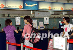 組圖:香港赴臺灣航班營運(yùn)正常 2002年05月26日 14:45 ![]() 五月二十六日上午,香港國際機(jī)場赴臺灣的所有航營運(yùn)正常。圖為“華航”柜臺均與往常一樣,次序井然。中新社記者 潘索菲 攝