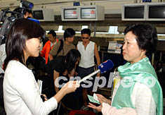 ![]() 五月二十六日上午,從香港赴臺北的航班正常起飛,臺北乘客關(guān)注“華航失事”,但并未影響他們搭乘“華航”班機(jī)的心情。中新社記者 潘索菲 攝