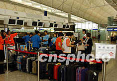 ![]() 五月二十六日,香港赴臺灣的旅游團(tuán)沒有受華航失事影響,照常搭乘華航班機(jī)赴臺灣旅游。中新社記者 潘索菲 攝