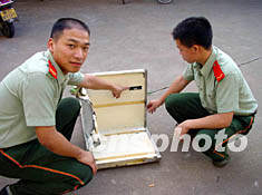 圖:一塊華航空難客機(jī)殘骸運(yùn)抵泉州 2002年05月30日 10:37 ![]() 五月二十九日下午,“閩泉漁0一七九號(hào)”漁船將打撈出的一塊華航客機(jī)殘骸交予邊防派出所。這塊客機(jī)殘骸是一塊“T”字型的鋁合金邊的木板,木板邊沿上刻有“409A”、“409”兩處紅色標(biāo)記,一塊木板右上側(cè)貼有一小塊黑色的鐵皮,上面印有“MAX.INSERT”和“WEIGHT 40.0 POUNDS”兩排英文字母。徐承彬 攝