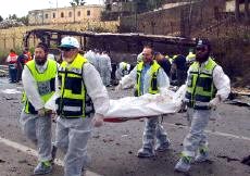 以色列汽車炸彈襲擊事件死亡人數(shù)上升至18人(圖) 2002年06月05日 15:47 ![]() 以色列汽車炸彈襲擊事件18人死亡,圖為工作人員清理現(xiàn)場。 中新網(wǎng)北京6月5日消息:以色列軍方電臺說,該國北部5日發(fā)生汽車炸彈爆炸事件,造成至少18人死亡,37人受傷,其中10人傷勢嚴(yán)重。 據(jù)法新社報(bào)道,這家電臺援引警方的消息說,16名以色列人在爆炸中喪生,其中包括多名士兵。 報(bào)道還補(bǔ)充說,另外還有兩具尸體身份尚未確定,可能是在車中的發(fā)動襲擊者。 在以色列北部港口城市海法,這輛放置有炸彈的汽車在一輛以色列公共汽車后面爆炸,引起公車燃起大火。