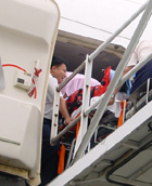圖文:劉海若在SOS幫助下抵京 順利入住宣武醫(yī)院 2002年06月08日 18:58 ![]() 升降臺(tái)上的擔(dān)架把劉海若從機(jī)艙內(nèi)接出 中新網(wǎng)香港6月8日消息:在倫敦火車出軌事故中受傷昏迷的鳳凰衛(wèi)視女主播劉海若,在國際SOS救援中心的幫助下經(jīng)過長途飛行,于今天下午抵達(dá)北京,順利入住北京市宣武醫(yī)院接受繼續(xù)治療。 根據(jù)鳳凰衛(wèi)視的消息,依然昏迷不醒的劉海若在姐姐、姐夫和SOS醫(yī)護(hù)人員的陪同下,乘坐中國國航波音747飛機(jī)于北京時(shí)間2點(diǎn)25分左右抵達(dá)北京首都機(jī)場(chǎng),2點(diǎn)45分被醫(yī)護(hù)人員用擔(dān)架抬出機(jī)艙,隨后即由救護(hù)車直接送往北京宣武醫(yī)院。 擔(dān)架上的劉海若還掛著點(diǎn)滴,她的全身被藍(lán)色毛毯緊緊裹住,頭部和胸部也被一個(gè)北京醫(yī)護(hù)方面事先準(zhǔn)備好的粉紅色大紗罩罩住。由于北京市宣武醫(yī)院準(zhǔn)備充分,劉海若的擔(dān)架一被抬下救護(hù)車就立即被送往住院部4層的神經(jīng)外科病房。 鳳凰衛(wèi)視董事局主席、行政總裁劉長樂和在北京工作的鳳凰同仁今天很早就趕到了機(jī)場(chǎng)等候劉海若的飛機(jī),并一路陪同劉海若抵達(dá)宣武醫(yī)院。 北京宣武醫(yī)院治療腦神經(jīng)有豐富的經(jīng)驗(yàn),該院的專家凌鋒醫(yī)生曾于5月份專程前往倫敦探診劉海若,熟悉劉海若的傷勢(shì)病情,劉海若轉(zhuǎn)往該醫(yī)院繼續(xù)治療可以保持治療的連貫性。 相關(guān)報(bào)道:劉海若乘國航班機(jī)抵京 到宣武醫(yī)院接受進(jìn)一步治療 相關(guān)報(bào)道:劉海若將于明天下午飛抵北京 宣武醫(yī)院準(zhǔn)備就緒 相關(guān)報(bào)道:劉海若仍昏迷不醒 家屬?zèng)Q定7日啟程赴北京治療 相關(guān)報(bào)道:家人證實(shí)劉海若將送京治療 凌鋒醫(yī)生將再赴倫敦