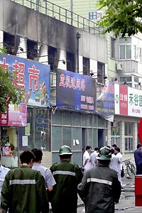 北京一網(wǎng)吧今晨發(fā)生火災(zāi)造成24死13人受傷(圖) 2002年06月16日 09:10 ![]() 目前起火原因正在調(diào)查之中。新華社記者 唐召明攝 中新網(wǎng)北京6月16日消息:據(jù)新華網(wǎng)報道,今天凌晨2時40分左右,北京海淀區(qū)學(xué)院路20號院內(nèi)的一家藍(lán)極速網(wǎng)吧發(fā)生火災(zāi)。經(jīng)公安消防部門現(xiàn)場勘察,火災(zāi)造成24人死亡,13人受傷。 接報后,北京公安消防部門迅速趕到現(xiàn)場。3時30分,火被撲滅。記者在現(xiàn)場了解到,公安部、北京市領(lǐng)導(dǎo)在現(xiàn)場組織搶救;馂(zāi)原因正在調(diào)查中。(牛愛民、李煦)