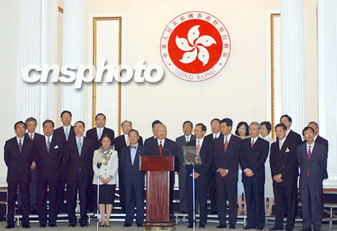 圖文綜述:香港特區(qū)政府問(wèn)責(zé)制高官閃亮出場(chǎng) 2002年06月24日 14:45 ![]() 香港特首董建華6月24日在香港禮賓府宣布二十一名“新內(nèi)閣”成員名單后,與將肩負(fù)重任的高官拍攝全家福。中新社傳真任晨鳴攝 中新社香港六月二十四日電(記者董會(huì)峰張淑琴)備受輿論關(guān)注的問(wèn)責(zé)制高官名單今天公布,香港特區(qū)行政長(zhǎng)官董建華形容這標(biāo)志著特區(qū)施政進(jìn)入新階段。 經(jīng)董建華提名、中央政府任命的十四位問(wèn)責(zé)高官是:政務(wù)司司長(zhǎng)曾蔭權(quán),財(cái)政司司長(zhǎng)梁錦松,律政司司長(zhǎng)梁愛(ài)詩(shī);工商及科技局局長(zhǎng)唐英年,房屋及規(guī)劃地政局局長(zhǎng)孫明揚(yáng),教育統(tǒng)籌局局長(zhǎng)李國(guó)章,衛(wèi)生福利及食物局局長(zhǎng)楊永強(qiáng),公務(wù)員事務(wù)局局長(zhǎng)王永平,民政事務(wù)局局長(zhǎng)何志平,保安局局長(zhǎng)葉劉淑儀,經(jīng)濟(jì)發(fā)展及勞工局局長(zhǎng)葉澍堃,環(huán)境運(yùn)輸及工務(wù)局局長(zhǎng)廖秀冬,財(cái)經(jīng)事務(wù)及庫(kù)務(wù)局局長(zhǎng)馬時(shí)亨,政制事務(wù)局局長(zhǎng)林瑞麟。 同現(xiàn)在相比,三位司長(zhǎng)人選未變;港府現(xiàn)有十六個(gè)決策局改組為十一個(gè)局,其中六位局長(zhǎng)來(lái)自公務(wù)員系統(tǒng),五位局長(zhǎng)屬“空降”,來(lái)自商界、專(zhuān)業(yè)界和學(xué)術(shù)界,他們分別是唐英年、李國(guó)章、何志平、廖秀冬和馬時(shí)亨。 為配合“七一”推行問(wèn)責(zé)制,林煥光、劉兆佳將分別出任特首辦主任、中央政策組首席顧問(wèn)。 董建華還公布了行政會(huì)議成員名單。問(wèn)責(zé)制下的行政會(huì)議成員,由現(xiàn)在的十二人增加到十九人。除上述十四位問(wèn)責(zé)高官外,五位非官方議員是:梁振英、田北俊、曾鈺成、鄭耀棠、廖長(zhǎng)城。 在今日于禮賓府舉行的記者會(huì)上,董建華同十四位問(wèn)責(zé)高官、五名行政會(huì)議非官方成員等大“亮相”。董建華在用粵語(yǔ)、英語(yǔ)致辭時(shí)表示,新任命的公布,標(biāo)志著主要官員問(wèn)責(zé)制的建立,標(biāo)志著香港特別行政區(qū)的施政進(jìn)入了新的階段。 董建華說(shuō):“未來(lái)五年里,我們會(huì)是一個(gè)勇于向市民負(fù)責(zé)的政府,是一個(gè)更開(kāi)明、開(kāi)放和進(jìn)取的政府,是一個(gè)更掌握和重視民情、民意的政府,也是一個(gè)對(duì)香港有高度承擔(dān)、決心與社會(huì)各方面通力合作的政府。” 他指出,新的班子來(lái)自社會(huì)各界,反映特區(qū)政府決心廣泛招納英才,確保在每一個(gè)政策范疇都有社會(huì)上最有能力的人帶領(lǐng),達(dá)到凝聚社會(huì)各方面的力量、融合社會(huì)各方面利益的目標(biāo)!靶碌陌嘧,清楚表明了我實(shí)踐對(duì)香港承諾的決心,展示我推行新的、有利于香港發(fā)展的施政路向的抱負(fù)。” 董建華還特別強(qiáng)調(diào),公務(wù)員隊(duì)伍是特區(qū)管治的基石,也是香港在全球化競(jìng)爭(zhēng)中的制勝因素。他會(huì)確保公務(wù)員體制的完整和公務(wù)員隊(duì)伍的穩(wěn)定得以維系,并要在此基礎(chǔ)上進(jìn)一步強(qiáng)化。 今日,董建華還公布了另外五位主要官員名單,他們負(fù)責(zé)領(lǐng)導(dǎo)紀(jì)律部隊(duì)、廉政公署和審計(jì)署。并宣布了十三位常任秘書(shū)長(zhǎng)的調(diào)派,他們將協(xié)助問(wèn)責(zé)局長(zhǎng)開(kāi)展日常工作。