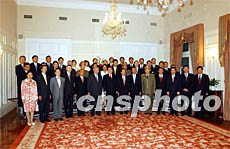圖:江澤民主席與香港特區(qū)政府高官及知名人士合影 2002年06月30日 22:01 ![]() 六月三十日,國(guó)家主席江澤民在香港禮賓府會(huì)見七月一日上任的第二屆香港特區(qū)政府“高官”及知名人士,圖為江澤民主席與他們合影。潘索菲 攝