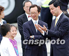 圖:梁振英、梁錦松向?qū)W童問好 2002年07月01日 18:16 ![]() 香港行政會議召集人梁振英(右)、財政司長梁錦松等香港高官,7月1日在香港國際機(jī)場為國家主席江澤民送行前,與為江主席獻(xiàn)花的學(xué)童問好。中新社圖 洪少葵 攝