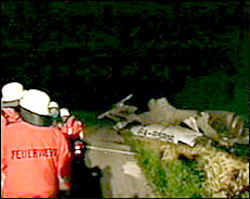 圖文:德國消防員正在飛機墜毀現(xiàn)場實施救援 2002年07月02日 10:51 ![]() 德國柏林當?shù)貢r間7月2日凌晨(北京時間7月2日晨7時),巴登-符騰堡州地方政府的發(fā)言人稱,兩架大型飛機于7月1日夜(北京時間7月2日晨)在德國與瑞士交界的博登湖(又譯康斯坦茨湖)上空相撞,兩架飛機隨后墜落在湖邊的公路上,目前至少有97人死亡。圖為消防員在飛機墜毀現(xiàn)場救援。(春風)