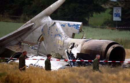 圖:一位德國警察在墜毀的圖-154客機(jī)附近搜尋 2002年07月02日 14:50 ![]() 德國當(dāng)?shù)貢r(shí)間7月1日夜(北京時(shí)間2日晨),一架DHL公司的波音757貨機(jī)和俄羅斯圖-154客機(jī)在德國巴登-符騰堡州于伯林根鎮(zhèn)上空相撞并墜毀,至少已造成71人死亡。圖為一位德國警察在墜毀的圖-154客機(jī)附近搜尋。(春風(fēng))