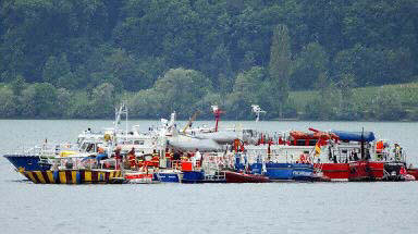 圖文:搜救船只在博登湖上搜尋 2002年07月02日 20:02 德國當(dāng)?shù)貢r間7月1日夜(北京時間2日晨),一架DHL公司的波音757貨機(jī)和俄羅斯巴什基爾航空公司的圖-154客機(jī)在德國巴登-符騰堡州于伯林根鎮(zhèn)上空相撞并墜毀,至少已造成71人死亡,其中包括52名兒童。圖為搜救船只在博登湖上搜尋。(春風(fēng))