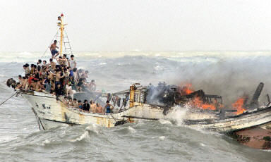 大陸船屋在高雄港起火獲救 海協(xié)就此事發(fā)表談話 2002年07月09日 18:31 ![]() 受困漁工聚在船首待救。(法新圖) ![]() 漁工被直升機(jī)凌空吊起,脫離火海。(臺(tái)灣聯(lián)合晚報(bào)圖) ![]() 獲救的漁工驚魂甫定。(臺(tái)灣聯(lián)合晚報(bào)圖) 中新網(wǎng)北京7月9日消息:海峽兩岸關(guān)系協(xié)會(huì)有關(guān)人士今天就一艘滿載大陸漁工的船屋在高雄港起火,人員大部獲救一事發(fā)表談話。 他說(shuō),7月9日上午8:30,搭載133名大陸漁工的臺(tái)灣屏東縣籍海上船屋“元?jiǎng)佟碧?hào),因浪大導(dǎo)致機(jī)艙進(jìn)水,電線走火,在高雄附近海上起火。高雄港務(wù)消防局、臺(tái)灣“海巡署”等臺(tái)有關(guān)單位派出直升機(jī)、救生艇等全力搶救。海峽兩岸關(guān)系協(xié)會(huì)上午10時(shí)得知消息后,立即與臺(tái)灣的“兩岸人民服務(wù)中心”聯(lián)系,請(qǐng)?jiān)摃?huì)轉(zhuǎn)請(qǐng)臺(tái)灣有關(guān)方面協(xié)助全力搶救。中國(guó)紅十字會(huì)、交通部海上搜救中心也分別與臺(tái)灣紅十字組織、臺(tái)北中華搜救協(xié)會(huì)緊急聯(lián)系,了解情況。至中午12時(shí),“船屋”上132人獲救,其中5人輕傷送醫(yī)院治療。起火具體原因尚在調(diào)查中。 這位人士表示,大陸有關(guān)方面對(duì)遇險(xiǎn)漁工的境況十分關(guān)心,海協(xié)已致函“兩岸人民服務(wù)中心”,向臺(tái)灣有關(guān)方面及參與救助的全體人員表達(dá)誠(chéng)摯的謝意。 海協(xié)請(qǐng)“中心”轉(zhuǎn)請(qǐng)臺(tái)灣有關(guān)方面妥善安置獲救漁工,繼續(xù)搜尋失蹤人員;并希望臺(tái)灣方面改變不合理做法,確保大陸漁工應(yīng)有的合理待遇和人身安全,防止類似事件再度發(fā)生。(完) 大陸漁工船失火:133人獲救2人重傷1人失蹤 中新網(wǎng)香港7月9日消息:臺(tái)北訊,作為祖國(guó)大陸漁工“海上旅館”用的臺(tái)灣屏東籍“元?jiǎng)俣?hào)”漁工船,今天在高雄海域發(fā)生火災(zāi)。據(jù)臺(tái)灣媒體最新消息,事故中目前共計(jì)救起133名大陸漁工,其中11人受傷送醫(yī),另有一人失蹤。 據(jù)“中央社”報(bào)道,“元?jiǎng)俣?hào)”漁工船今天上午在高雄大林蒲外海發(fā)生火警,造成祖國(guó)大陸漁工兩人重傷、九人輕傷送醫(yī)。 受傷的11名大陸漁工中,有10人被送往高雄市的小港醫(yī)院急救。其各自的傷勢(shì)情況如下—— 蕭輝,25歲,右手挫傷;陳如君,27歲,左手撕裂傷及頸部扭傷;陳良紅,28歲,頭部及右臉頰外傷;沈繼兵,32歲,頭部外傷及背部多處挫傷;顧海兵,23歲,右手臂擦傷及左小腿挫傷;張永,27歲,頭部外傷、多處撕裂傷、左手臂及右手肘挫傷;唐宗林,20歲,嗆傷及顏面灼傷;劉國(guó)保,29歲,嗆傷及胸部挫傷;師福君,21歲,嗆傷;李建國(guó),26歲,臉部燒燙傷合并嗆傷。 這10名受傷漁工中,除師福君及李建國(guó)重傷外,其余都屬輕傷。其中師福君因在被救過(guò)程中落海,吸入大量海水,造成肺部吸入性嗆傷,經(jīng)急救后,傷勢(shì)穩(wěn)定,仍住院觀察;而李建國(guó)傷勢(shì)最為嚴(yán)重,但暫時(shí)亦無(wú)生命危險(xiǎn)。 另一名祖國(guó)大陸漁工任忠均,22歲,身上多處擦傷,經(jīng)急救已無(wú)大礙。 此外,一名失蹤者的身份目前待查。 原停泊在高雄與屏東間外海的“元?jiǎng)佟倍?hào)海上船屋,今天上午約8:30時(shí)在高雄南星計(jì)劃填海造陸區(qū)外海一浬處突然起火。由于風(fēng)浪太大,救援船只無(wú)法靠近。臺(tái)灣方面遂派出直升機(jī),以鋼纜吊掛、接駁方式,將船屋上的大陸漁工救至岸上。據(jù)悉,救援行動(dòng)歷經(jīng)近5個(gè)小時(shí)。 “元?jiǎng)佟碧?hào)是臺(tái)灣屏東縣籍的祖國(guó)大陸漁工海上船屋,停泊高雄與屏東間外海,因臺(tái)灣方面不允許祖國(guó)大陸漁工上岸,該船屋被專門用于出海作業(yè)漁船雇用的大陸漁工居住。 相關(guān)報(bào)道: "突然巨浪打來(lái)…"大陸獲救漁工回憶海上大火驚魂 相關(guān)報(bào)道:大陸漁工船起火132人獲救 落水失蹤人數(shù)說(shuō)法不一 相關(guān)報(bào)道:圖文:大陸漁工船屋被燒毀 128名漁工全部獲救 相關(guān)報(bào)道:七位大陸漁工在高雄急救 有人跳海 船屋沉沒一半 相關(guān)報(bào)道:臺(tái)灣船屋失火 救起60余大陸漁工 尚有30多待救 相關(guān)報(bào)道:搭載大陸漁工的船只在臺(tái)灣海峽失火 100多人待救 相關(guān)報(bào)道:一艘載有100多人的大陸漁船在臺(tái)灣海峽著火