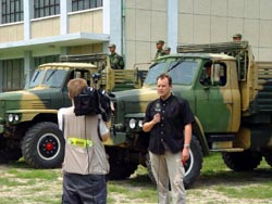 多圖:最大規(guī)模的外國記者團(tuán)受邀參訪解放軍軍營 2002年07月11日 10:30 ![]() 摩托化步兵196旅進(jìn)行實(shí)彈演習(xí) ![]() 外國記者關(guān)注中國軍隊(duì) ![]() 芬蘭廣播公司記者現(xiàn)場報(bào)道 ![]() 美國國際公眾電臺記者采訪空24師飛行員 ![]() 空24師政委同日本時(shí)事社記者交談,以上圖片均據(jù)外交部網(wǎng)站 中新網(wǎng)北京7月11日消息:2002年7月10日,中國外交部外國記者新聞中心組織外國駐京記者參觀采訪中國人民解放軍摩托化步兵196旅和空24師,共有來自63家媒體的105名駐華記者參加,外交部新聞司司長孔泉說,如此大規(guī)模地組織外國記者走進(jìn)中國軍營,多年來還是第一次。 據(jù)外交部網(wǎng)站消息,196旅隸屬于北京軍區(qū),其前身是步兵第196師,目前擔(dān)負(fù)著保衛(wèi)北京和天津,守衛(wèi)海防的任務(wù)。該旅下設(shè)10個(gè)營,共有3500名官兵。 記者們參觀了該旅的軍官訓(xùn)練中心、生活服務(wù)中心和連隊(duì),觀看軍事科目表演,與戰(zhàn)士共進(jìn)午餐并自由交談。在參觀過程中,記者們還詢問了有關(guān)部隊(duì)的編制、訓(xùn)練生活情況、發(fā)展前景以及部隊(duì)對臺灣、國際軍事合作等問題的看法。該旅旅長胡東敏對他們的問題一一作了回答。 空24師建立于1951年,目前主要擔(dān)負(fù)北京、天津和華北地區(qū)東北部的防空作戰(zhàn)任務(wù)。該師下設(shè)2個(gè)戰(zhàn)斗團(tuán),1個(gè)“八·一”飛行表演隊(duì)和4個(gè)場站,約有飛行員100人。記者參觀了該師定檢廠房和靜態(tài)飛機(jī),觀看了訓(xùn)練飛行。該師師長王偉詳細(xì)介紹該師情況并回答了記者們提出的問題。