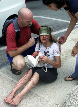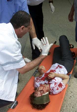 (圖)耶路撒冷希伯來大學餐廳發(fā)生爆炸致7死85傷 2002年07月31日 19:08 ![]() ![]() ![]() 中新網北京7月31日消息:據美聯社報道,耶路撒冷東部希伯來大學的一個餐廳31日午餐時間發(fā)生爆炸,造成7人死亡,85人受傷,其中14人重傷。 巴勒斯坦激進組織伊斯蘭抵抗運動哈馬斯宣布對此次爆炸事件負責,并稱這是對以色列23日轟炸加沙居民樓進行的報復。 雖然以色列的各大學目前均已放假,但發(fā)生爆炸時仍有許多留校學生正在咖啡廳用午餐。 事發(fā)后,新華社記者與在該大學區(qū)讀書的幾名中國留學生取得了聯系。據他們介紹,由于學校放假,中國學生均離開了學校,在爆炸中沒有中國學生受傷。目前有十幾名中國留學生在該大學區(qū)讀書。 死傷的人員中大部分為18-30歲的學生,其中許多為外國學生。這是自以巴沖突爆發(fā)以來,在以色列校園內發(fā)生的首起爆炸襲擊事件。 巴勒斯坦民族權利機構事后發(fā)表聲明譴責爆炸事件。以色列總理沙龍取消了當天的所有日程安排,預計以色列內閣將召開會議。 美國總統(tǒng)布什強烈譴責本次襲擊。他呼吁巴勒斯坦民族權利機構致力制止恐怖主義,并強調美國不會放棄推動中東實現和平。 在昨日,巴勒斯坦激進份子,在耶路撒冷市中心,發(fā)動自殺式襲擊,造成一死七傷。