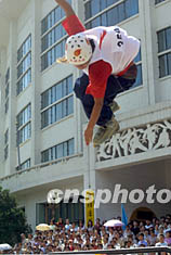 圖:全國極限精英賽在北京工人體育館舉行 2002年08月10日 16:45 ![]() 中國極限精英賽十日在北京工人體育館舉行,北京選手在滑輪街式比賽中的高難度騰空動作令人驚嘆。 作者:史利