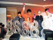 蘇永康帶笑謝歌迷:我回來了(附圖) 2002年08月14日 10:26 ![]() 歌迷的打氣信給康仔很大的鼓勵 ![]() 蘇永康主持破冰儀式寓意新開始 中新網(wǎng)香港8月14日消息:包含“重新出發(fā)”與“新專輯慶功”雙重意義的蘇永康“SUPER NICE”記者會13日下午在遠東飯店舉行。 據(jù)明報報道,康仔在記者會上神情顯得輕松自在。蘇永康說,這段接受勒戒的日子里,他深深感受到家人、朋友、歌迷帶給他的愛與關懷,這是他三十多年首次如此深切的體驗。 唱片公司特別為康仔安排“消災解厄儀式”,希望他遠離災難、重新出發(fā)。該儀式先是過火盆,再來是噴柚子葉水,最后吃豬腳面線,另外蘇永康也擊破一座“88888”的冰雕,象征著他的唱片專輯賣得非常成功,突破8萬8千888張。整個活動尷尬的氣氛被“慶功”的意味給沖消掉了。(林佳宏)