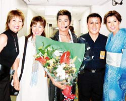 郭富城日本演唱會(huì) 藤原紀(jì)香帶家人捧場(chǎng)(圖) 2002年08月19日 10:45 ![]() 郭富城(中)演唱會(huì),緋聞女友藤原紀(jì)香(右一)“神秘”出現(xiàn) 中新網(wǎng)新加坡8月19日消息:郭富城在大阪展開(kāi)日本巡回演唱會(huì)的第一場(chǎng),緋聞女友藤原紀(jì)香毫不避嫌,穿著日本和服出現(xiàn),還包下一排觀眾席,帶著家人、朋友捧場(chǎng)。 據(jù)聯(lián)合早報(bào)報(bào)道,由于郭富城已有五年沒(méi)在日本舉行個(gè)唱,所以歌迷反應(yīng)相當(dāng)熱烈。全場(chǎng)演出,郭富城講的是自己苦練多月的日語(yǔ)。緋聞女友藤原紀(jì)香竟不避嫌,穿著和服“神秘”出現(xiàn)。 據(jù)悉,郭富城幾個(gè)月前就已通知紀(jì)香,他會(huì)在日本舉行三場(chǎng)巡回演唱,但紀(jì)香一直以“不在日本,不能出席”來(lái)回復(fù)他。豈料,她不但出現(xiàn),還包起一排觀眾席,帶著家人、朋友一齊捧場(chǎng)。 演唱期間,紀(jì)香一直看得十分投入,不停站起來(lái)叫喊及伴舞。兩人也似乎心有靈犀,臺(tái)下的紀(jì)香穿著充滿女性溫柔的和服捧場(chǎng),而臺(tái)上的郭富城,也以日本武士裝演出,儼然情侶裝。