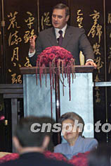 今天抵達上海的卡西亞諾夫中午出席了中方經(jīng)濟界人士舉行的午餐會,并發(fā)表講話。中國國務委員吳儀、俄羅斯聯(lián)邦政府副總理赫里斯堅科陪同出席午餐會。