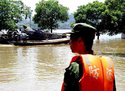 8月11日以來,我省自北向南再次發(fā)生新的降雨過程。特別是從8月18日開始,全省普降中到大雨,部分地區(qū)降暴雨,主要集中在湘中、湘北及湘西南地區(qū),湘、資、沅、澧四水及洞庭湖水位持續(xù)上漲。截止20日14時,湘江長沙站水位37.4米,超警戒水位2.4米,湘江第六次洪峰即將到來。洞庭湖城陵磯水位33.5米,超警戒水位1.5米。目前,三口(松滋、藕池、太平)四水入湖流量45127立方米每秒,出湖流量19300立方米每秒,洞庭湖水位仍將攀升。2O日,岳陽縣楊柳垸、毛家湖垸,湘陰縣湘濱垸,汨羅市屈原垸等處大堤分別出現翻沙和管涌等險情;益陽桃江縣花果山鄉(xiāng)發(fā)生管涌群;衡山縣境內發(fā)生山洪。邵陽市市區(qū)4條主要街道被淹;207國道雙牌段被洪水沖毀,交通中斷,形勢十分危急。湖南省委、省政府宣布全省進入緊急防汛期。為奪取今年抗洪搶險的勝利,省軍區(qū)號召: