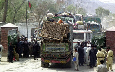2002年8月23日在距巴基斯坦西北大約70公里的白沙瓦城市,數(shù)千名阿富汗難民在聯(lián)合國難民事務高級專員辦事處的幫助下,經過二十年之后重返他們的祖國。