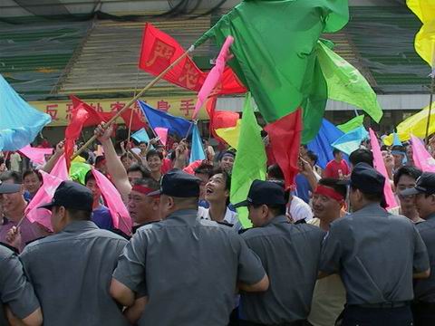 今天上午,福建省體育中心場內(nèi)出現(xiàn)了數(shù)百名“球迷”,在一片“打倒黑哨”的口號聲,“綠茵場”內(nèi)亂成一團,摔礦泉水瓶,砸酒瓶,甚至趁機放火,一時“狼煙四起”。隨著“事態(tài)”的發(fā)展,福建省公安機關(guān)和武警部隊的各主要警種陸續(xù)聞訊趕來。