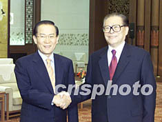 中新社北京九月三日電 (記者 朱大強(qiáng))中共中央總書(shū)記、國(guó)家主席江澤民今天在人民大會(huì)堂會(huì)見(jiàn)了來(lái)訪的韓國(guó)大國(guó)家黨名譽(yù)總裁李會(huì)昌一行。
