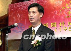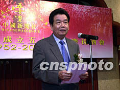 專程前來澳門出席酒會的中新社副社長兼總編輯郭招金在致辭時說,中國新聞社是向港澳同胞、臺灣同胞、華僑華人提供新聞、文化服務(wù)的通訊社,總社設(shè)在北京。經(jīng)過五十年的發(fā)展,中新社已建立起比較完整的新聞采集體系,在中國內(nèi)地的二十五個省、自治區(qū)、直轄市設(shè)有五十六個分社、支社、記者站。在香港、澳門特別行政區(qū),在美國、澳大利亞、日本、法國、泰國建有分支機構(gòu),F(xiàn)在中新社每天播發(fā)新聞電訊稿一百條,傳真圖片三十張。中國新聞網(wǎng)每天更新新聞三、四百條,中國新聞圖片網(wǎng)每天更新新聞圖片一百幅。中新社還辦有《新聞周刊》、《華聲視點》、《中國經(jīng)濟周刊》、《中華文摘》、《時代傳媒》等刊物以及制作影視節(jié)目的影視部。每天向海外幾十家報紙?zhí)峁⿲8搴椭谱魇邆報紙版面。