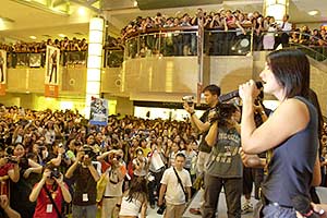 仔仔周渝民2月底來新,在本地新達(dá)城展開6000歌迷馬拉松簽名時(shí),當(dāng)時(shí)萬(wàn)人包圍仔仔,出動(dòng)50名保安護(hù)駕,而仔仔所收到的禮物多達(dá)40幾袋,場(chǎng)面非常轟動(dòng)!
