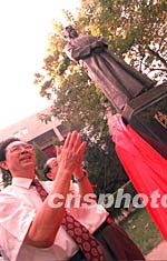 北京師范大學在百年校慶之際為老校長陳桓在校園內(nèi)立了一座雕像。圖為雕像的揭幕儀式