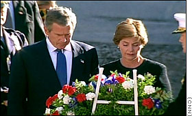布什在世貿(mào)遺址敬獻花圈 將發(fā)表全國講話(圖)