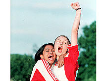 中新網(wǎng)9月19日電 《我愛貝克漢姆》女主角帕敏德初登大銀幕,為了扮演好這個(gè)對(duì)貝克漢姆有狂熱崇拜的角色,她憑著“JUST DO IT”的精神,苦練足球基本功,令導(dǎo)演不禁懷疑帕敏德私下究竟花了多少時(shí)間偷練?有場(chǎng)讓帕敏德表演踢自由球的戲碼居然一次就O.K,令劇組人員目瞪口呆!