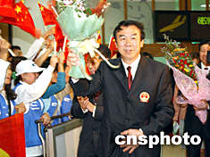 中新社釜山九月二十六日電(記者 王健)前來參加釜山亞運會的中國體育代表團官員及部分運動隊,今晚在國家體育總局局長袁偉民的率領下,乘坐民航包機抵達韓國釜山。