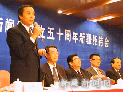 新疆維吾爾自治區(qū)主席阿不來提·阿不都熱西提,中共新疆維吾爾自治區(qū)委副書記司馬義·鐵力瓦爾地,中共新疆維吾爾自治區(qū)委常委、宣傳部長吳敦夫,中共新疆維吾爾自治區(qū)委常委、秘書長符強,新疆維吾爾自治區(qū)副主席買買提明·扎克爾,新疆維吾爾自治區(qū)人民政府秘書長阿尤甫·鐵依甫,新疆生產(chǎn)建設兵團黨委常委、秘書長王崇久,新疆軍區(qū)政治部副主任劉建星,以及來自新疆政界、新聞界、文化界等一百多位嘉賓與會。中國新聞社副總編輯田惠明一行五人專程從北京趕赴烏魯木齊主持、參加招待會。