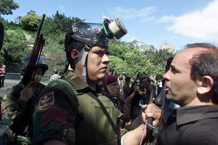 委內(nèi)瑞拉將領(lǐng)稱總統(tǒng)失去權(quán)力 軍隊控制國家(圖) 2002年04月12日 10:40 委內(nèi)瑞拉10名高級軍官11日發(fā)表聲明,要求總統(tǒng)查韋斯下臺.圖為2002年2月4日委內(nèi)瑞拉總統(tǒng)在首都加拉加斯檢閱軍隊。法新圖
