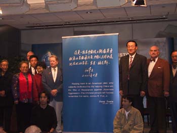 江澤民主席的題詞是:這是一位在中國抗日戰(zhàn)場英勇獻(xiàn)身的美國飛行員,中國人民將永遠(yuǎn)記住他的名字:吉米.福克斯。