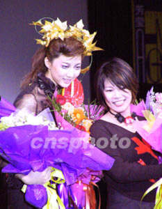二00二廣東(秋季)時(shí)裝周,十九日晚在廣州花園酒店降下帷幕,獲獎(jiǎng)設(shè)計(jì)師與模特接受現(xiàn)場(chǎng)觀眾祝賀。作者:劉衛(wèi)勇