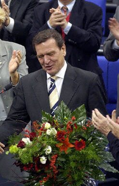 據(jù)國際在線報道,施羅德獲得599票中的305票,超過當(dāng)選所必需的302票,成功蟬聯(lián)德國總理一職。