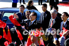 江澤民主席應(yīng)布什總統(tǒng)邀請(qǐng)?jiān)L問美國,二十二日抵達(dá)芝加哥奧黑爾機(jī)場(chǎng),向前來迎接的各界人士揮手致意。作者:王瑤