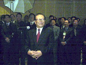 圖:江澤民會見駐美人員、留學生和華僑華人代表