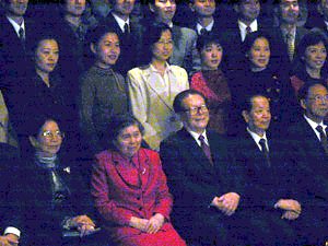 當?shù)貢r間今天晚上八點四十分,正在美國進行訪問的中國國家主席江澤民在下榻的飯店會見了中國駐芝加哥總領館工作人員、留學生和華僑華人代表,并與大家合影留念。中新社記者 呂振亞 攝