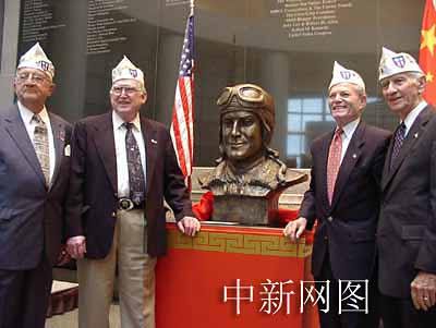 中新網(wǎng)休斯敦10月22日電(記者 陳建)年近九旬的古蒂亞和漢克斯先生今天又可以和他們的老友吉米·福克斯“站”在一起了。六十年前,他們也曾站在一起合影,一起駕機(jī)空運(yùn)物資,支援中國(guó)的反法西斯戰(zhàn)爭(zhēng)。今天,兩位昔日老兵一起親手揭開(kāi)紅綢,給人們看吉米·?怂沟你~像——還是二十四歲的模樣,戴著飛行頭盔,英氣勃勃。