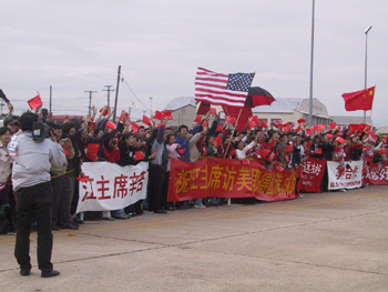 當(dāng)江澤民專機(jī)降落在洛斯卡沃斯國(guó)際機(jī)場(chǎng)時(shí),中國(guó)香港特區(qū)行政長(zhǎng)官董建華夫婦,先期抵達(dá)的中國(guó)外交部長(zhǎng)唐家璇,外經(jīng)貿(mào)部長(zhǎng)石廣生、中國(guó)駐墨西哥大使李金章和墨西哥一名副外長(zhǎng)等在舷梯旁迎接。