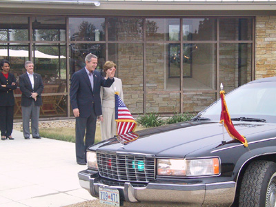 當(dāng)江澤民和夫人王冶坪乘專車抵達(dá)牧場正門口時(shí),提早迎候在那里的布什總統(tǒng)和夫人勞拉走向前去,與江澤民夫婦熱情握手。布什說,這個(gè)牧場是我溫暖的家,我和勞拉非常高興在家里接待你和王冶坪女士。