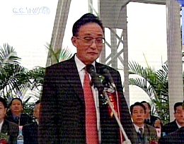 國務(wù)院副總理吳邦國宣布導(dǎo)流明渠截流合龍成功后,全國人大委員長李鵬發(fā)表了重要講話。