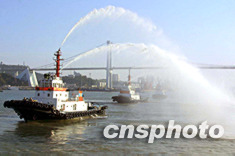 廈門港日前舉行海上消防演練,出動六艘全回轉(zhuǎn)拖輪在海天碼頭海域進(jìn)行搶險(xiǎn)應(yīng)急演練。作者:鄭憲
