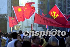 中共“十六大”即將在北京開幕,廣州大街小巷處處洋溢節(jié)日氣氛,街頭國旗、黨旗處處飄揚,喜迎“十六大”召開。作者:陳文
