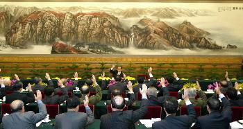 隨后,會議在江澤民同志主持下進行了各項議程。會議以舉手表決方式通過了丁關(guān)根、羅干、曾慶紅、王剛為大會副秘書長。