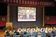 八日,中國共產黨第十六次全國代表大會在北京勝利召開。上海各高校師生收看十六大開幕式盛況。作者:湯彥俊