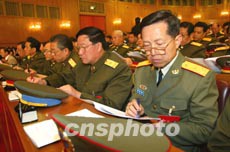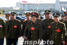 圖為解放軍代表步伐整齊出席開幕會。作者:毛建軍