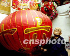 圖:廣州九旬老藝人扎出大燈籠歡慶十六大
