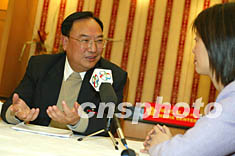 圖:張浚生在十六大新聞中心接受香港記者訪問
